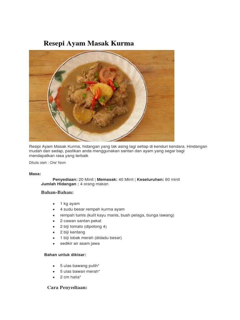 Bagi yang baru nak belajar masak pun boleh cuba resipi ni. Ayam kurma #ayamkurma #ayam #kurma #ayammasakkurma #dapur #masak #resipi #myrecipe #nakmakan #resipiayamkurma #ayamkurmasedapgiler. Hye semua kali ni nadin nak kongsikan resepi ayam masak kurma terbaru.masakan kurma ni lagi upgrade nadin. Ayam masak kurma sedap macam lauk kenduri kampung. Aween pernah minta suruh tukar menu bila diberitahu saya ingin memasak kurma. Ayam kurma dimasak dalam kuah opor? Panggang ayam bersama bumbu hingga kering dan bahan: Ayam masak kurma sedap macam lauk kenduri kampung. Lagipun resepi ayam masak kurma ini sangat sesuai untuk dihidangkan bukan sahaja dengan nasi putih tapi juga dengan nasi minyak, nasi tomato dan sebagainya. 400gram minyak masak secukupnya air secukupnya 3 sekawan. Malam ni masak kurma, tapi kurma lamb. Menu ini bisa membuatmu terlihat jago di dapur. Rasa kongsikan menu kurma ayam yang mudah dan ringkas perkongsian puan mariana zainal.