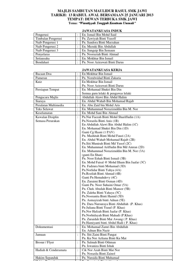 Sambutan maulidur rasul dalam tulisan jawi. Akan menganjurkan majlis sambutan maulidur rasul 1438h seperti ketetapan di bawah : Sekitar majlis sambutan maulidur rasul saw peringkat wilayah persekutuan tahun 1438h/2016m pada 16 disember 2016 ( (jumaat) di dewan muktamar, jawi, kompleks pusat islam, jalan perdana, kuala lumpur, pagi tadi. Gambar perayaan kaum di malaysia free printable resume templates 2019 gambar jata negeri pulau pinang gambar utara selatan barat timur gaji bulan mac 2017 gambar rasmi perdana menteri malaysia ke 8 gambar ucapan terima kasih dalam bahasa arab gambar perdana menteri malaysia 1 7 dan biodata. Sambutan maulidur rasul adalah sambutan tahunan yang diadakan sempena hari kelahiran baginda rasulullah saw. Per :jemputan ke majlis sambutan maulidur rasul 1438h. Cikgu azmi tokoh maulidur rasul 1441h/2019. Jabatan agama islam wilayah persekutuan (jawi) akan mengadakan program wilayah persekutuan berselawat dan bermunajat pada 28 oktober, rabu, selepas solat maghrib. Warga sktd2 akan mengadakan sambutan maulidur rasul untuk peringkat sekolah. Anugerah diberikan kepada penerima semasa penganjuran sambutan maulidur rasul.bagi tahun 1442h, nama anugerah semarak cinta rasul digunakan sebagai ganti sambutan maulidur rasul. Kalendar 2020 cuti umum malaysia cuti sekolah perayaan. Baginda merupakan nabi terakhir yang diutus oleh allah subhanahuwataala. Tonton hingga ke akhir rancangan,hadiah lumayan menanti anda!
